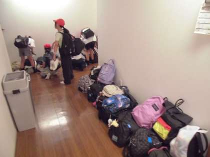 部屋に戻ると、さっそく荷物整理と布団や使わせてもらったものの片づけをスタートしました。「来た時ってどんなんやったっけ?」「大丈夫、覚えてるから」と心強いことば。まずは自分の荷物をかばんに入れて、リュックには先生に言われた必要なものを入れて…。このときも、忘れかけている友だちに、教えてあげている姿。行方不明の帽子を、みんなで探してあげている様子もありました(最後は、自分のカバンから出てきました。見つかって良かったね)。