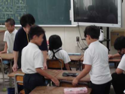 えっちら、おっちら机を運んでいます。今日は席替え。自分だけの机を移動したら終わり、ではなく、さっと友だちのお手伝いをしている様子が、あちらこちらで見られました。さりげない優しさに、「育和の子はほんとやさしいなぁ」と、こちらまで優しい気持ちになりました。