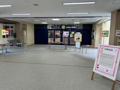 今、育和小学校の玄関は、子どもたちにとって「宝物の山!」状態です。