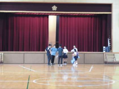 楽しい集会が終わった後の体育館。みんなが教室に戻った後、舞台前で集まっている子どもたちの姿がありました。集会委員会の子どもたちです。担当の先生と一緒に残って、今日の振り返りをしていました。「次はもっと、みんなが喜んでくれたらいいな」…この積み重ねが、子どもたちを成長させてくれます。