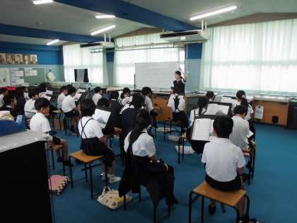 4年生が音楽の時間に、「まきばの朝」を歌っていました。この曲は、文部省唱歌でもあり、もしかしたら保護者の方の中にも「知ってますよ〜」という方もおられるかもしれません。この学習では、「声の出し方」や「旋律のまとまり」に注目しながら、工夫して歌えることがめあてです。朝からみんなで歌える時間があるっていいなぁと思いながら、音楽室を後にしました