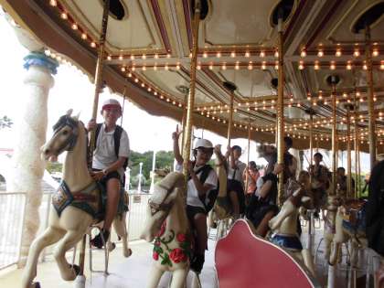 スペイン村内を巡っていると、「先生も一緒に乗ろうよ」と声をかけてくれる子がたくさんいます。全部一緒に乗れなくてごめんね、と思うのですが、いざ参加すると、それはそれはうれしそうにしてくれます。待ってる時間に話したことも、乗っている時間も、すべてがここにいるみんなにとって、いい思い出になります。
