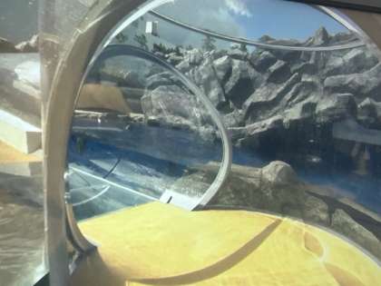 この通路は足元も透明なので、水の中の様子もよく見えます。この日、海獣の王国ではエサやりタイムを見せてもらうことができました。