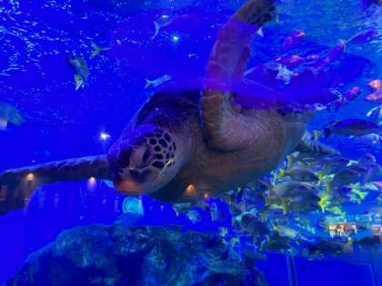 再び戻って巨大水槽のあるエントランスホールです。正にイロトリドリノセカイ。子どもたちと一緒に、しばらくその様子に見惚れていました。