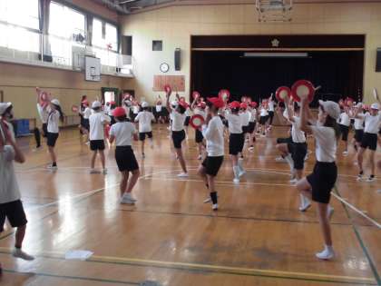 パーランクーの音が聞こえてきました。5年生は、今、運動会に向けて「エイサー」に取り組んでいます。まずは、ひとつひとつの動きを確認しながら、先生が丁寧に進めてくれていました。ここから子どもたちがどこまで高みをめざしていけるか、こうご期待です。