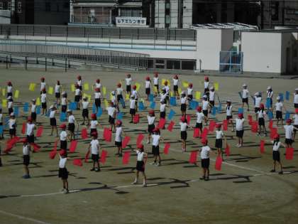 2年生は、今日は運動場でフラッグを持って練習していました。フラッグを振る腕の動きも、「ビュン、ビュン」の音も力強く、去年初めてだった運動会のかわいい演技の様子を思い浮かべながら、様子を見ていました。しばらくして出張に行くときに柵越しに覗いてみると、今度はまた隊形が変わっていました。本番までの道のりはまだまだこれからですが、日に日に成長していく子どもたちに感心でした。