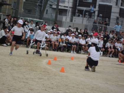 プログラム10番は、2年生の徒競走「Run!Run!Run!」でした。今回は初めてトラックのカーブに合わせて曲がって、最後は直線でゴールイン!1年生のときよりも随分速く駆け抜ける姿に、頼もしさも感じました。
