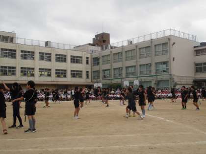 プログラム11番は、4年生の団体演技「なわとび演技 For You」でした。これまで取り組んできたなわとび演技の種類の数は、なんと30種類!中には、友だちと協力して相談しながら、生み出し組み合わせた技もあります。どの場面でも、息を合わせて、心を合わせて。フォーメーションを様々に変えながら跳ぶ姿に、拍手が送られました。