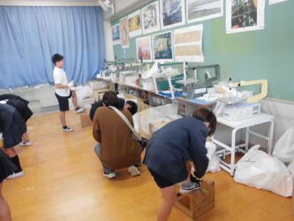 ギコギコ、ギコギコ・・・図画工作室からいい音が聞こえてきます。4年生が、のこぎりを使って木を切っていました。椅子を横にして使い、体重を足にグッとかけながら、しっかり押さえて上手に切り進めていました。ひとつひとつが大事な経験です。がんばってね。