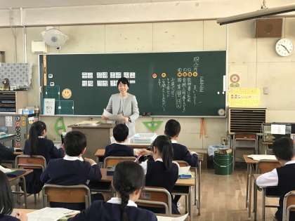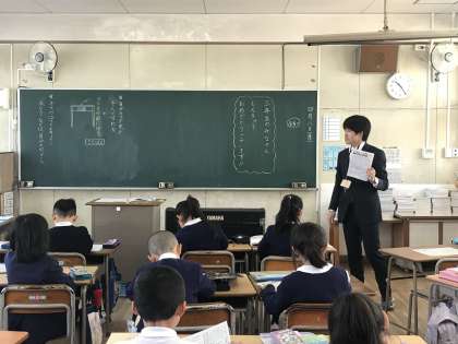 3年1組担任は、相島寛子先生。3年2組担任は、津村勇樹先生です。写真を撮りに教室に入ると、子どもよりも驚くのは津村先生です。なぜじゃ…(笑)