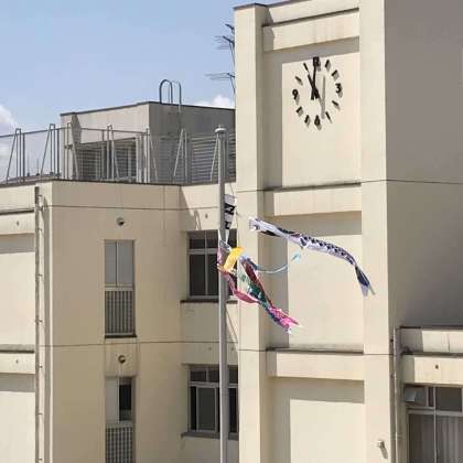 今年度、初めてお披露目させていただきました。真鯉や緋鯉が、大空いっぱいに風を受けて泳いでいます。