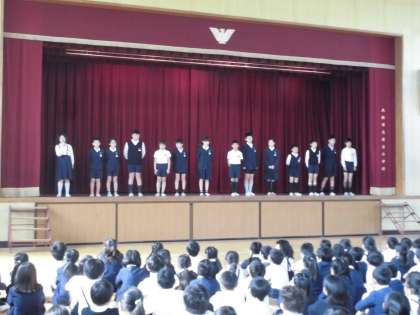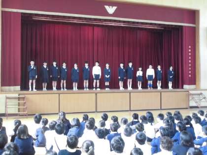 本日の児童集会は、本年度の児童会を進めていく「代表委員」と「各委員会代表」の紹介です。