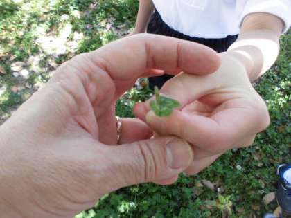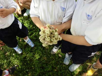 テントウムシを見つけた子、四葉のクローバーを見つけた子。ふだん学校ではできない経験もできました。