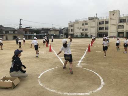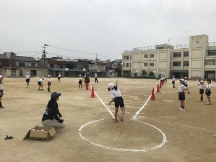 ソフトボール投げの記録もさることながら、投げたあとのボールの処理も手際よく役割分担することができていました、決してボールからは目を離さず、安全に気を付けながら、協力して実施できていました。
