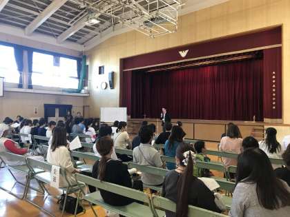 家野PTA会長のご挨拶、小松校長からの挨拶のあと、各委員会に分かれ、担当の教員も含め、自己紹介をしました。