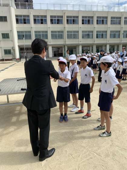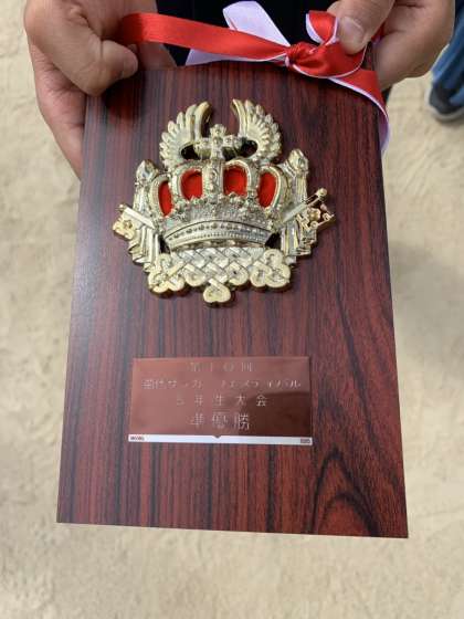 本日の児童朝会で、FCの表彰がありました。「第10回 苗代サッカーフェスティバル5年生大会」で準優勝の成績を納めたので、校長先生から披露・表彰をしていただきました。