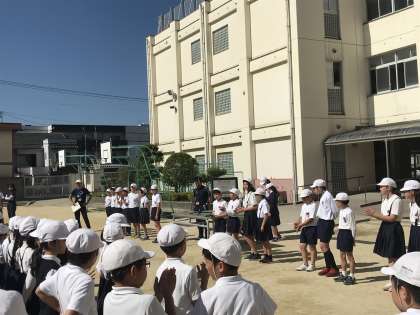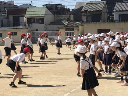 鬼ごっこ「かわおに」を全校児童で楽しみました。1回目は、6年が鬼だったので、多人数と体が大きいことからの威圧感で、手加減してくれているのですが、なかなか潜り抜けることは難しかったようです。2回目も、5年が鬼だったので、難度は高かったようです。でも、高学年が鬼になることで、下の学年が楽しめるような配慮をすることができていました。