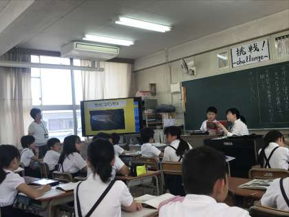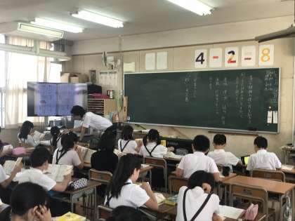 4年生。1組は、国語「ヤドカリとイソギンチャク」、2組は国語「漢字辞典の使い方を知ろう」の学習の様子を見ていただきました。