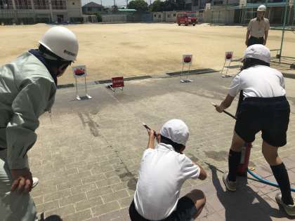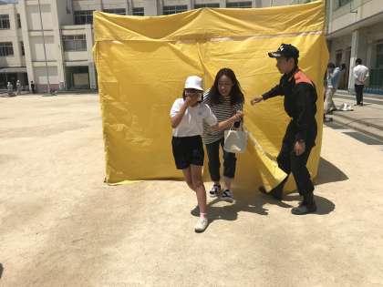 4年生は「水消火器」、5年生は「心肺蘇生」、6年生は「煙テント」の体験学習をしました。