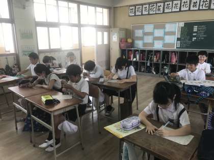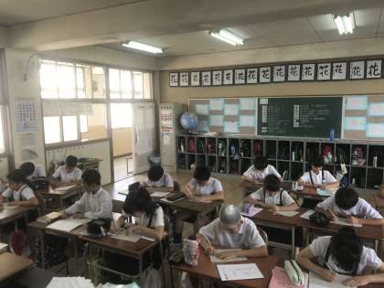 先週から始めました。今日は、朝会後、5年生の様子を取材しました。みんな真剣に描きこんでいました。朝会時の態度が、全学年大変よく褒められていたので、たぶんお話もしっかりと聞けていることでしょう。