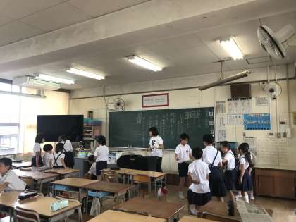 今日の5時間目は「鷹合フェスティバル」に向けて、たてわり班でお店づくりをしていく「なかよし班活動」です。