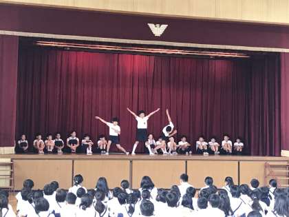 今日の児童集会は、生活・集会委員会による「ルールを守ろう運動週間」への働きかけの発表でした。