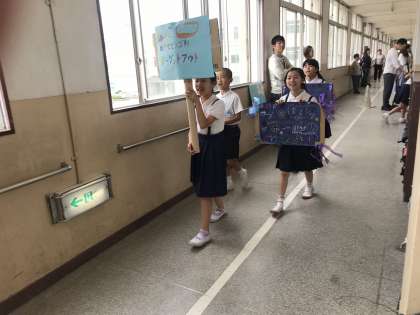 たてわり班でなかよく、ルールを守って楽しんでいました。お店の宣伝マンもあちこちで活躍していました。