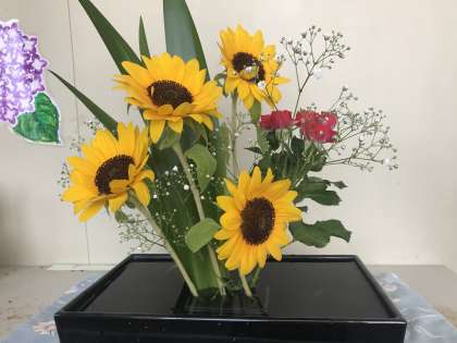 MOAの方が生けてくださる花にヒマワリが。昨日、プール清掃も済みました。夏が始まりますね。