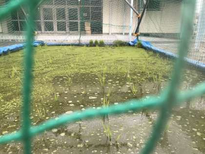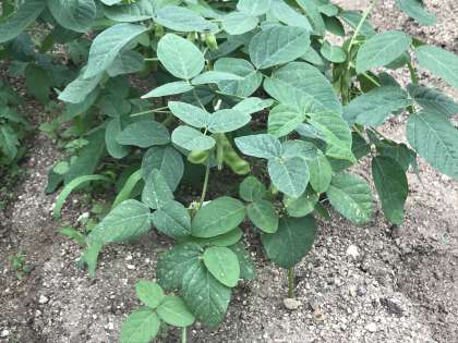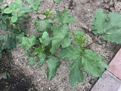 5年の鷹合田、2年の学習園の「オクラ」「エダマメ」の様子です。