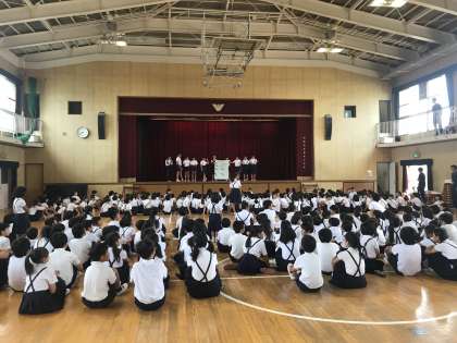 図書委員会からは、1学期の「読書の記録」で1年生〜3年生は読んだ冊数を、4年生以上は、読んだページ数で各学年上位3人の発表がありました。