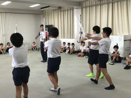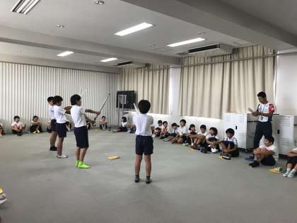 キャンプファイヤーの火の精と火の神入場の練習です。おごそかな雰囲気が流れています。