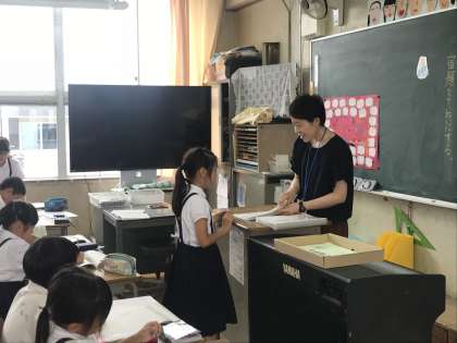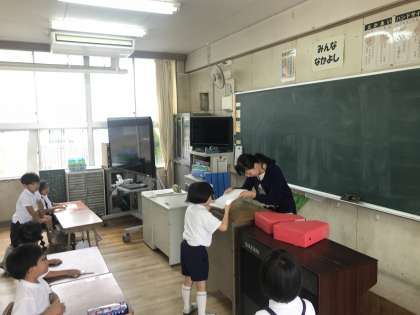 クラスに戻って、担任の先生から「通知表」を一人ひとりいただきました。1学期の自分の頑張りが記録されています。家に帰って、家族にみてもらい、いっぱい褒めてもらいましょう(^O^)