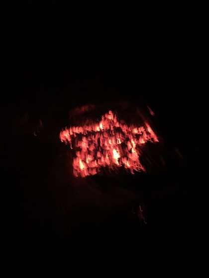 盛り上がりも最高潮に達したころ…。炎は静まり…。「今日の日はさようなら」のハミングのもと、☆の形に…