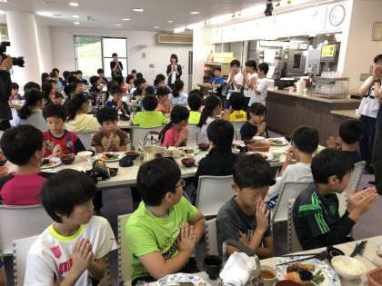 朝ごはんは、和食。早寝・早起き・朝ごはん。本日午前の活動のエネルギーです。しっかりいただきましょう。昨夜見た夢の話で盛り上がっていた班もあったそうです。どんな夢だったのでしょう?青いアフロの火の神様?(笑)