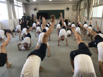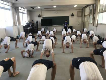 組み立て体操の技の規制がある中、久野先生の熱い思いで構成された今年の団体演技。修学旅行の取り組みと平行してなので、1分1秒が惜しい感じです。笠井先生も応援団や児童会の取り組みで6年生が活躍できるように、準備は万端です。