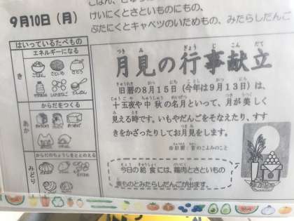 お月見は9月13日(金)ですが、一足早く「月見の行事献立」でした。