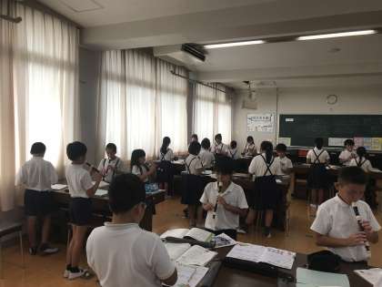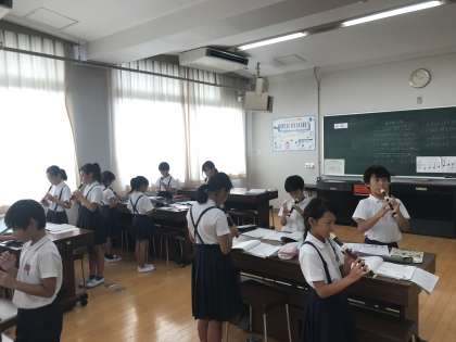 疲れもたまる週半ば。4年生の音楽の授業の様子です。きれいな音色での二重奏ができていました。ちょっと癒される時間帯でした。