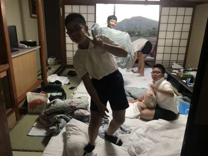 逆さまになって寝ている子。友だちの布団を奪って寝ている子。子どもどうしでは、「夜の攻防」はあったようですが(笑)、数々の泊を伴う行事に連れて行った中でも、稀に見るお利口な子ども達で、教職員も睡眠を取る事ができました。1年の時の担任は誰?あ、河野(笑)2年・4年〜6年の担任は久野先生。積み重ねの賜物?いえいえ、保護者の方々の子育て、躾の賜物ですね。