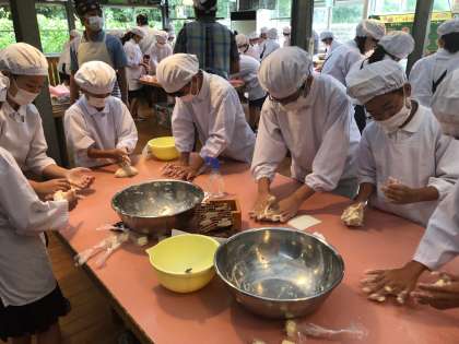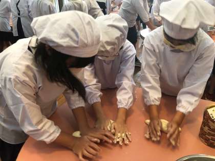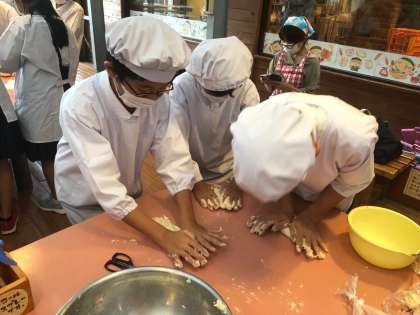 生地を人数分に等分したら、自分のパン作りの工程となります。「おいしくなーれ」「おいしくなーれ」としっかりコネコネしていきます。
