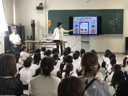 4年生は、NTTドコモの方と東住吉警察の方を講師に招き、「インターネット安全利用教室」を実施しました。スマートフォンやパソコンを使い始める時期になってきたので、正しい安全な使い方を親子で学びました。