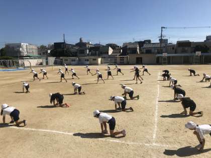 運動会まであと2週間…。暑さも、やっとマシになってきたので、どの学年も運動場での練習が増えてきています。団体演技も、全体が見えてきてました。