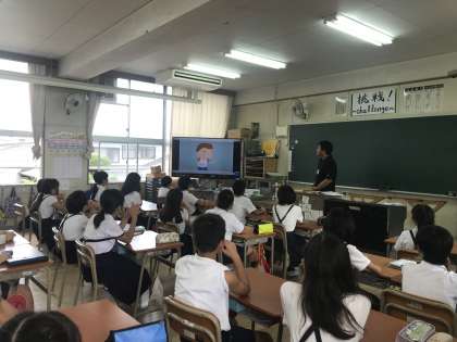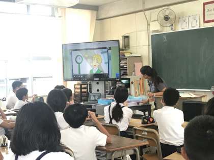 運動会の練習期間は、休止していた英語タイム。今日から復活です。高学年に入り込む担当も変わりました。