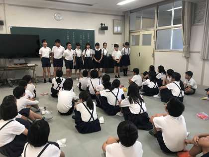 運動会で大活躍した応援団。本日で解団となりました。それぞれが、応援団でがんばった思い出や感想を伝えあいました。