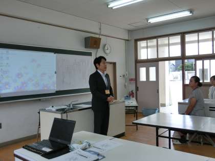 全部で17人の方が参加されました。学校長の挨拶のあと、小山栄養教諭から、「学校給食の内容」「食品ロス」について講話があり、その後に当日の給食献立の試食会を持ちました。