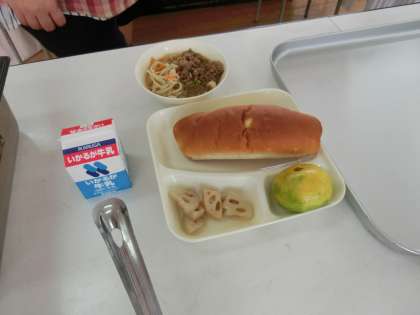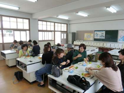 本日、PTA学級保健委員会主催による「給食試食会」が家庭科室で実施されました。