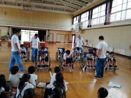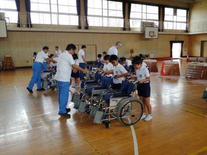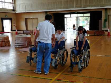 本日、3年生は、大阪市リハビリテーションセンターの方々を講師にお招きして、「車いす体験学習」を実施しました。