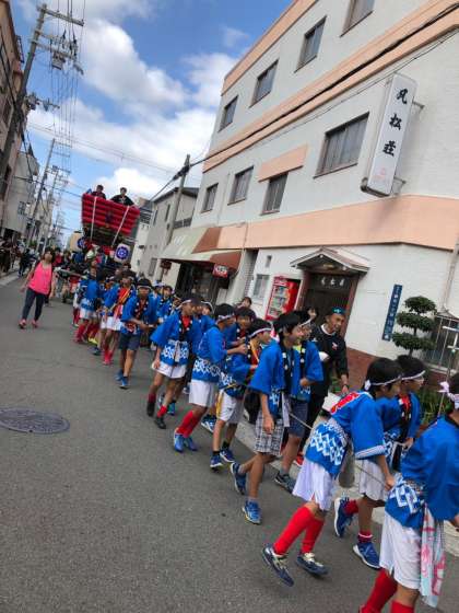 子供達が太鼓のリズムに合わせて大きな声を出し、元気いっぱい街中を歩いていると、沢山の方々が外へ出てきて応援してくれてました。