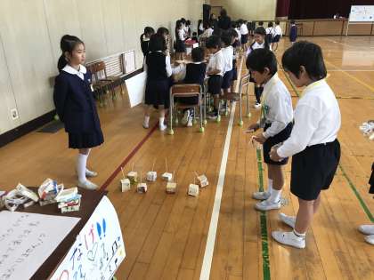 約1時間、おもちゃランドを楽しんだ後に、1年生は「ありがとうございました!」とお礼をいって、教室にもどりました。