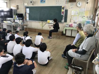 5年のプログラムは、お話「くぎスープ」、絵本「からすたろう」「シロナガスクジラより大きいものっているの?」「おかあちゃんがつくったる」「はやくちことばでおでんもおんせん」でした。