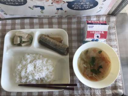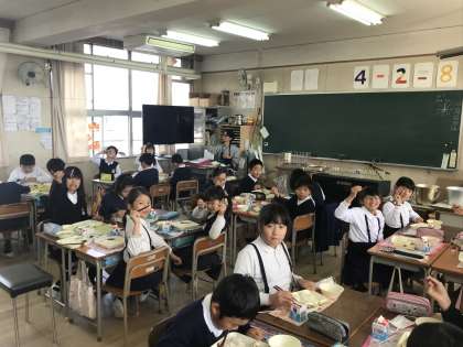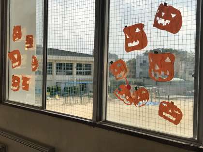 4年生は、本日の栄養指導を受けたあとですので、サンマの骨を上手に取りながら、美味しそうにいただいていました(^O^) ちなみに4年生の教室と廊下は、Halloween仕様です(笑)